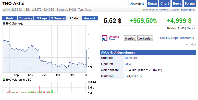 die THQ-shares bald wieder da stehen, wo sie vor'm Split standen... Mhhh...