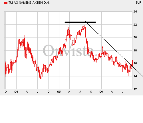 ich glaube, die TUI steht kurz vor einem erneuten Ausbruch nach oben; ich hoffe jedenfalls nicht nach unten! Wenn die 17 € Linie erst mal geknackt ist, dann dürfte es bis zur 18 € Linie auch nicht mehr lange hin sein. Ich finde, die 18 € als Kursziel ist zur Zeit realistischer als zurück auf die 14 €; dabei ist es doch schließlich egal, ob diese Aktie wegen einer Übernahmefantasie steigt oder durch Bewertung fundamentaler Kriterien, welche beispielsweise in der Vergangenheit überhaupt keine Rolle spielten. Die Schiffahrt wird am Ende des Geschäftsjahres gar nicht so schlecht dastehen, da bin ich mir sicher, denn ich kenne den Laden.