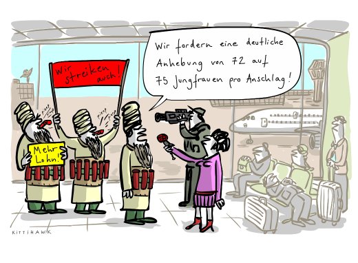 Aber die Streikforderungen sind wohl noch nicht durch. und für idiote die ausversehen drauf gehen gibts wahrscheinlich eh keine einzige jungfrau.