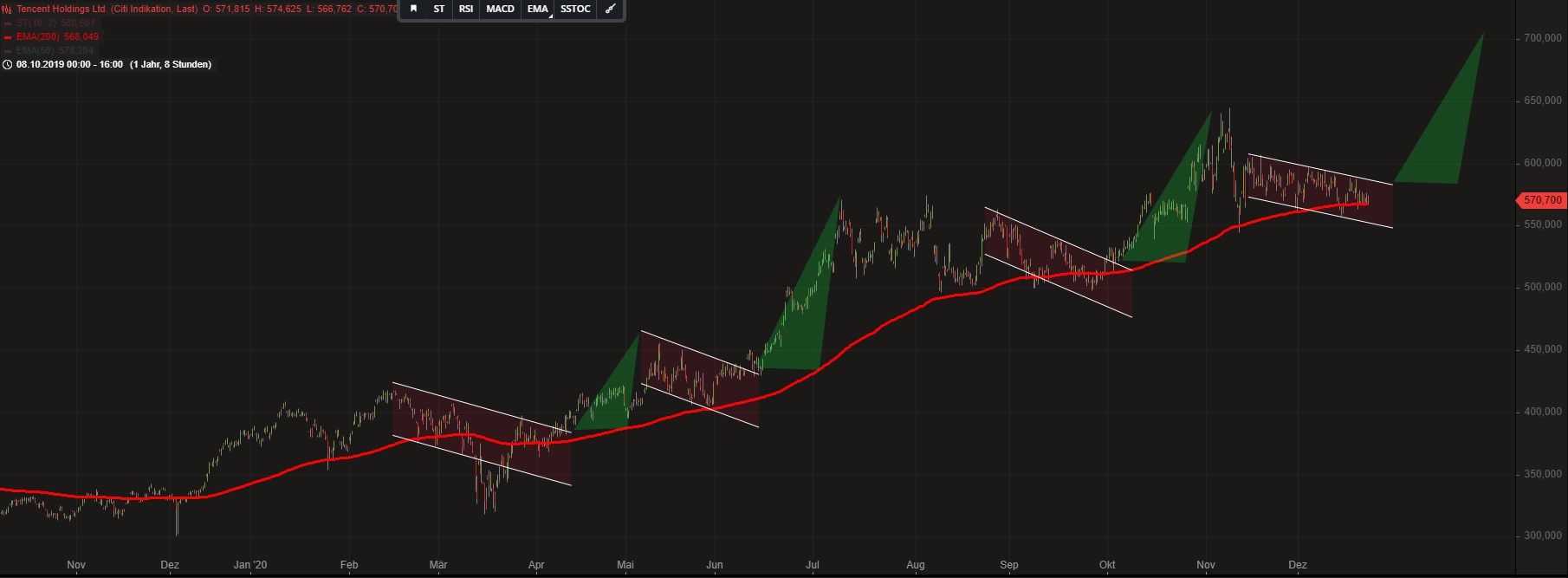 Aus meiner Sicht hat die Aktie von Tencent im Bereich von ca 570 HK $ einen Unterstützungscluster.