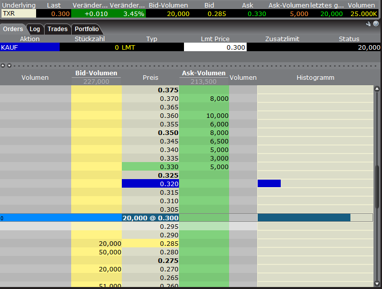 Gerade noch mit 10% im Plus bei 0.32 CAD habe ich mir nochmals 20.000 zu 0.30 CAD geleistet (aus dem ASK!), da die jemand unbedingt los werden wollte.