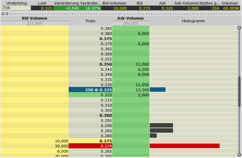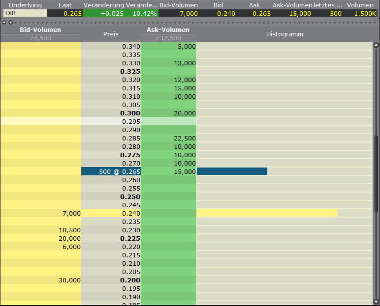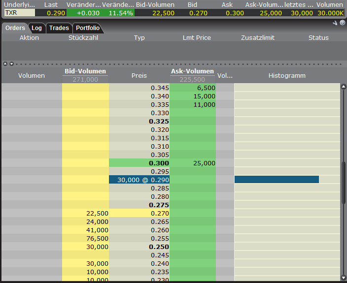 Heute wieder ein Sonderangebot (25.000 zu 0.30 CAD). Schon öfters beobachtet. Angebote liegen oft zwischen BID und ASK. Frag' mich, was das soll? Will der Anbieter seine Aktien nun wirklich an den Mann bringen oder nicht? Tendenziell wohl schon, aber nicht zu billig ... Ich halte derzeit 41.500 und die reichen mir vorerst.