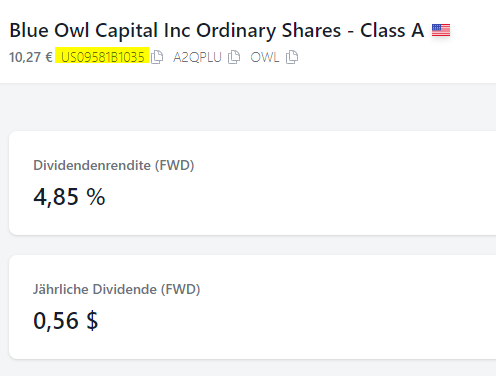 Wie in Beitrag #24 im Thread nebenan berichtet, scheinen die inzwischen von der Trade Republic an Maxblue übertragenen Owl Rock-Stücke auch dort mit der ISIN US69121K1043 im Depot auf. Sie werden dort allerdings jetzt mit "Blue Owl Cap. Reg. Shs" betitelt und nicht länger mit Owl Rock und sind zudem auch an deutschen Börsen handelbar.