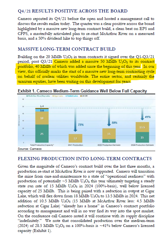 “There is an RFP(request for proposal) for 9 million lbs uranium from a US utilitie starting from 2026, in the market now.”