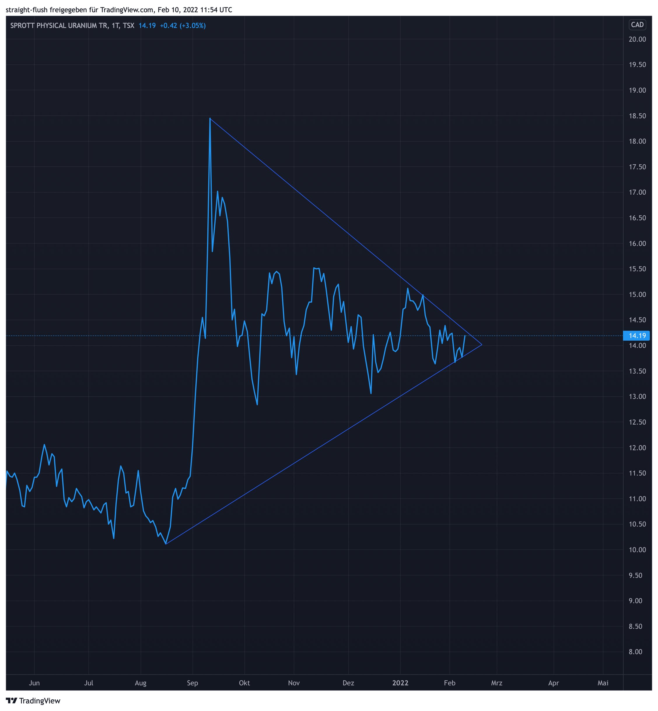 Was am Wochenende den Leuten bewusst werden konnte , falls die Ukraine durch Russland angegriffen wird.Dann muss der Westen Russland Sanktionieren, d.h. Oil und Gas werden sich massiv verteuern.Aber was bis jetzt noch keiner auf der Rechnung hat , Uran wird es auch ! Ich glaube ca. 20% des weltweit produzierten Uran kommt aus Russland , falls sie Kasachstan ins boot holen können dann wird es .....