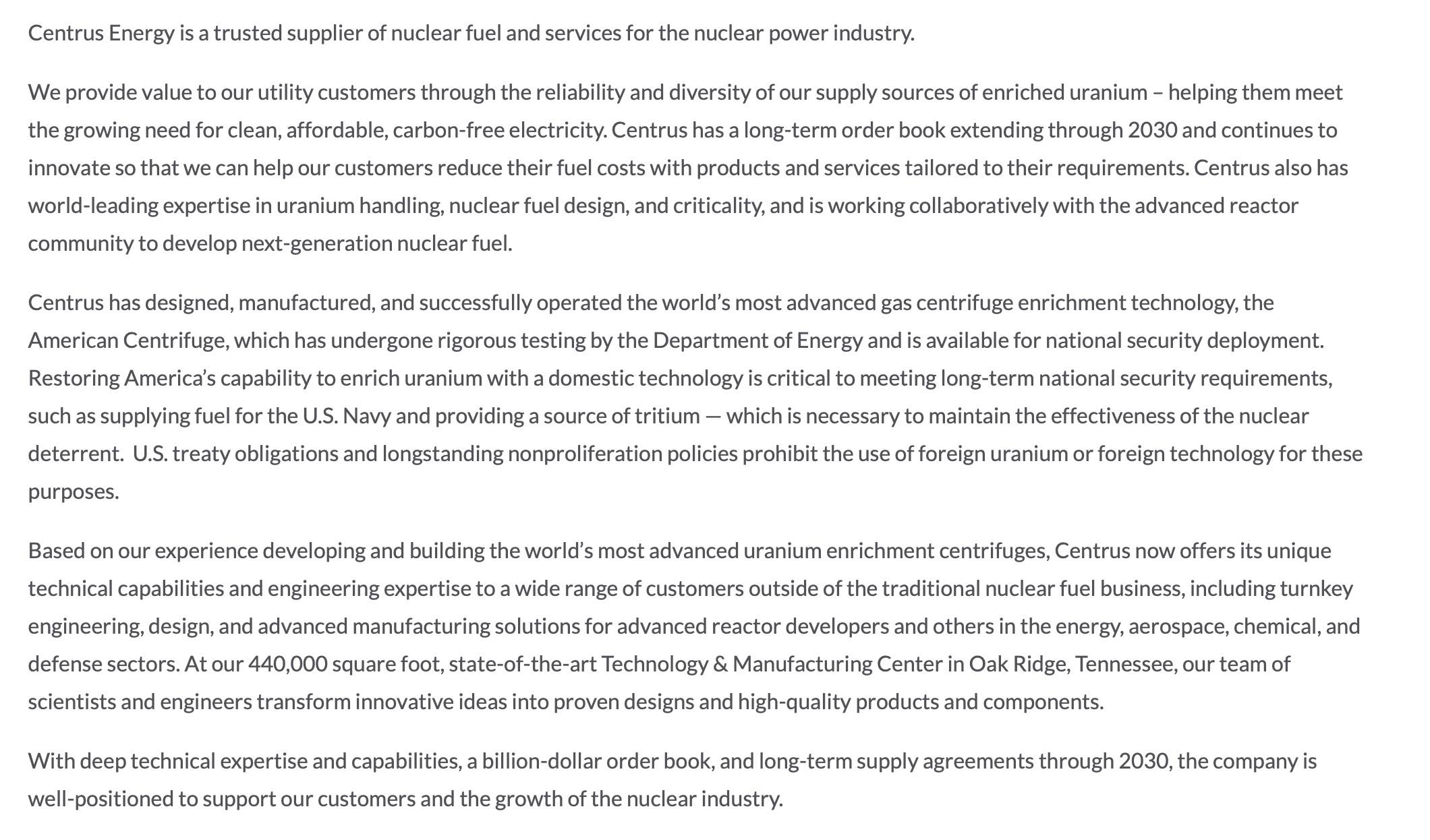 Centrus Energy is the world’s most diversified supplier of enriched uranium fuel for civilian nuclear power reactors.