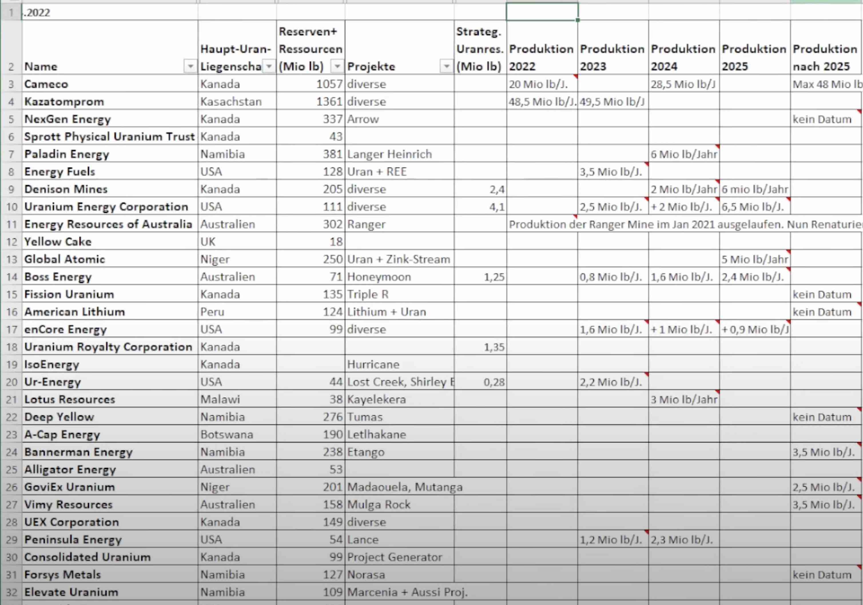finde ich Peninsula Energy am günstigsten (Mk 251M. Aud) und es ist auch meine größte Uranposition. Was auch noch günstig ist im Verhältnis zum abgebauten Uran und auch zeitnahen Produktionszeitpunkt ist UR-Energy (Mk 482 M. Cad).
