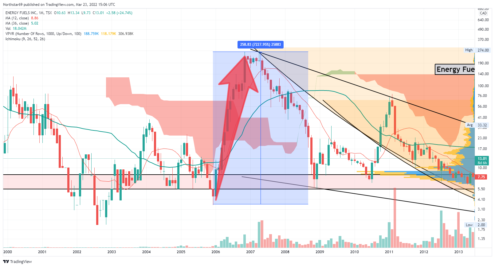 #Uranium - During the last bull market around 15 years ago, miners like EFR & MGA went up thousands of percent in a few months. That hasn't happened yet. NOW ASK YOURSELF THIS...Are current supply/demand conditions as favourable for a surge as they were back then ?