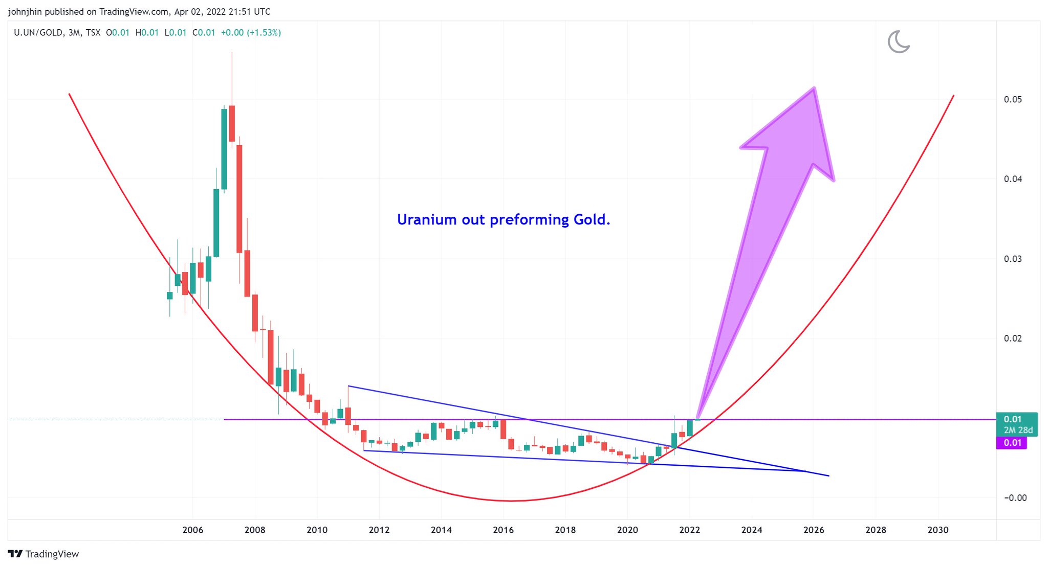Ich war früher optimistisch für Uran. Ich wusste nicht, was der Auslöser für den nächsten Anstieg sein würde; wie sich herausstellte, war es der Einmarsch Russlands in die Ukraine. Der nächste Schritt: SPUT dürfte in einigen Monaten an der NYSE notieren, was wahrscheinlich eine weitere Kaufwelle auslösen würde. Und wenn SPUT kauft, bewegt sich der Kurs.