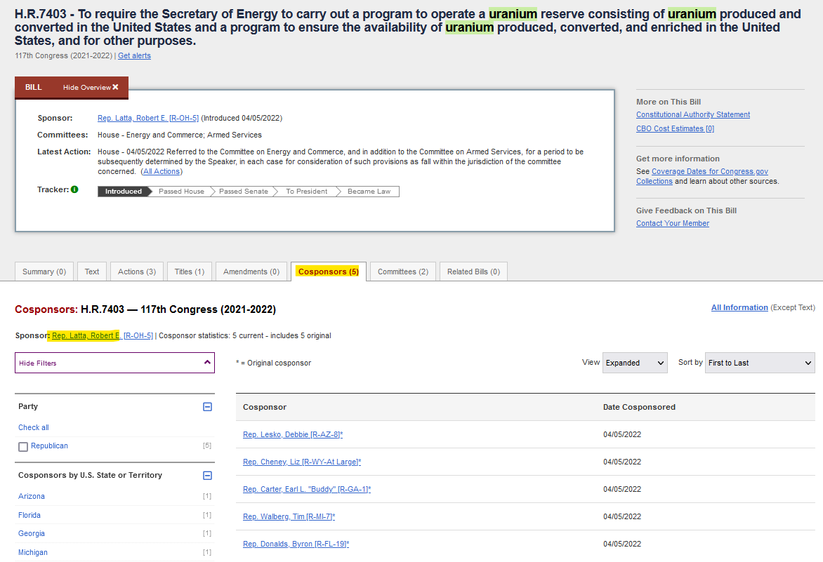 FYI.. this is a new House companion Bill 7403 that is identical to Senate Bill 3978 that together are moving this legislation forward to establish a US #Uranium Reserve & boost US #Uranium production, conversion and enrichment.#Nuclear #EnergySecurity #USA