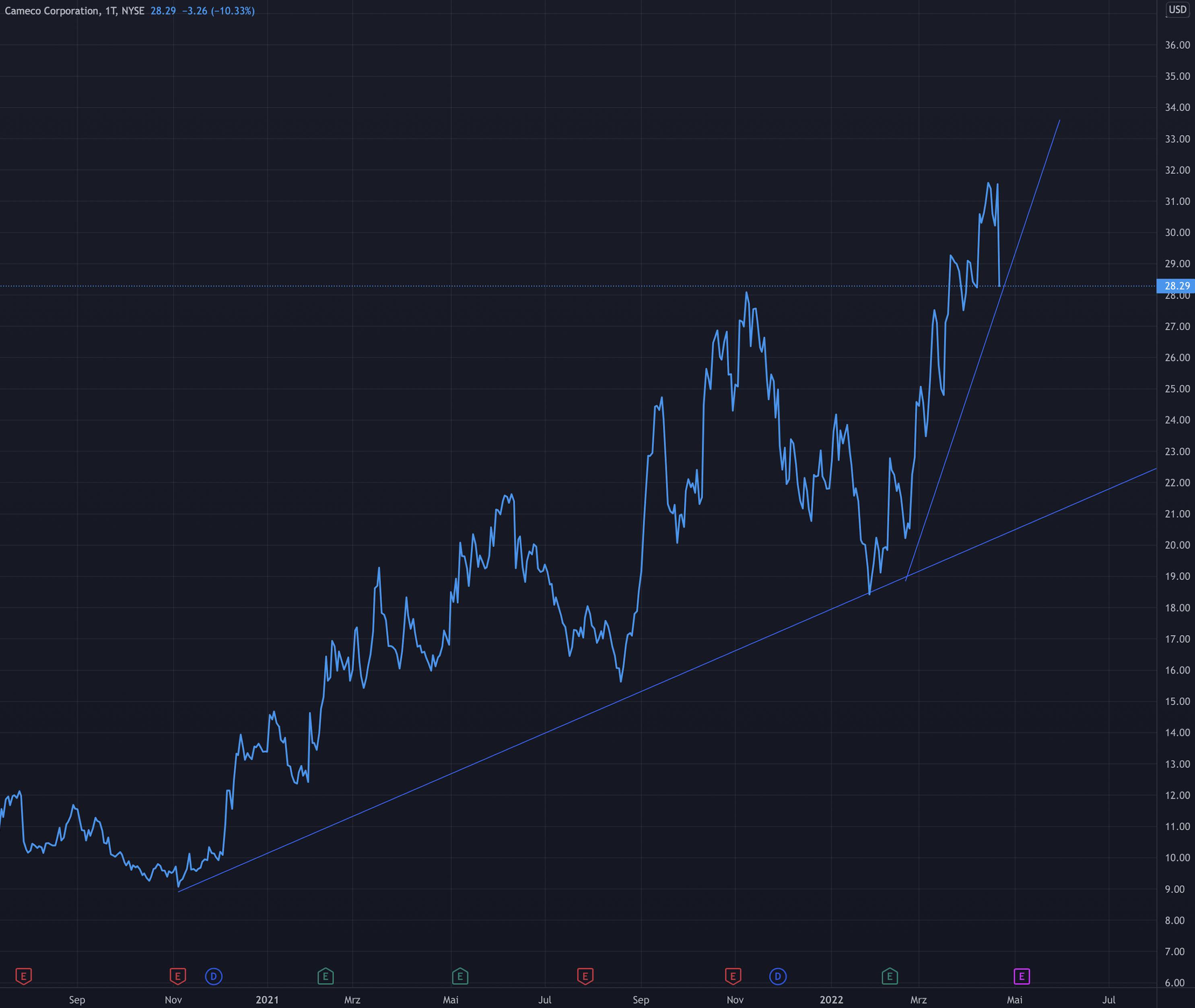 Übrigens sind alle Uranwerte abgeschmiert ( außer KAZ), nicht nur Cameco.