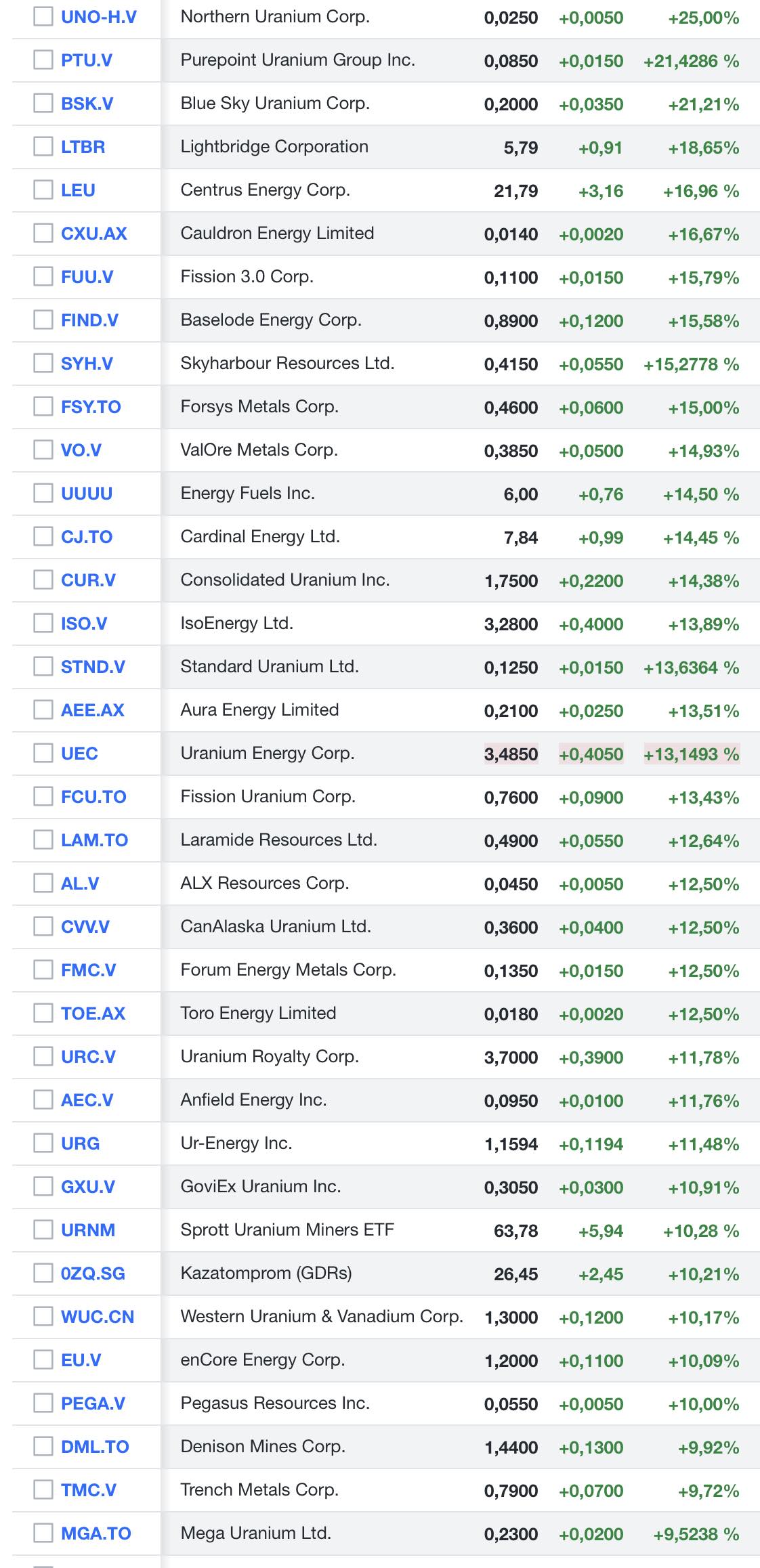 Und heute endlich ein Rebound und Uran führt diesen an ( in den div. Watchlist nach Sektoren gegliedert).