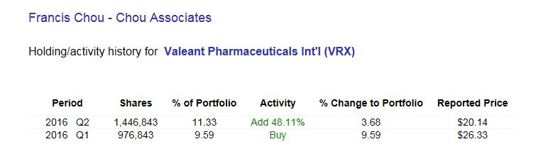 Francios Chou hat im Q2 Valeant gekauft