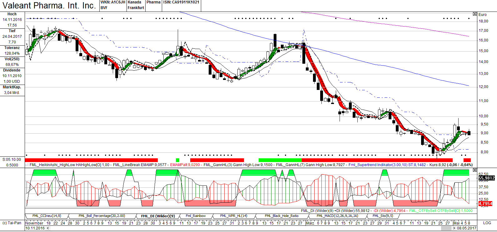 Valeant Pharma. meldet für das erste Quartal einen Gewinn je Aktie von $1,79. Umsatz mit $2,11 Mrd. unter den Erwartungen von $2,15 Mrd. Erhöht Prognose