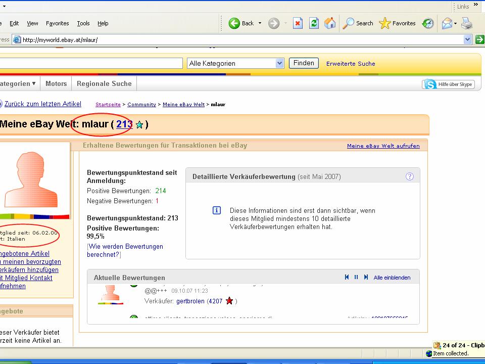Ich hoffe, es ist Ihnen klar, dass der Betreiber (Micheal Laureano) dieses Accounts (mlaur) ein wegen Betruges rechtskräftig verurteilter Insolvent ist, der via EBAY in 2007 Gold/Silber leerverkaufte, welches er nicht besaß. Hunderte haben zT grosse Verluste erlitten. EBAY wurde von der 1. Instanz schuldig gesprochen, weil es trotz Warnungen (auch von meinerseits) nicht rechtzeitig trotz Warnungen und einigen Hinweisen von Ebay-Usern nicht gegen diesen Betrug vorging und weiter gewähren ließ.