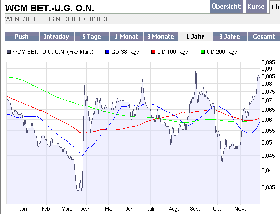 WCM schon stark überkauft. Bin mal gespannt, ob heute die ersten Stopp loss kommen. Erste Zielmarke: Euro 0,075