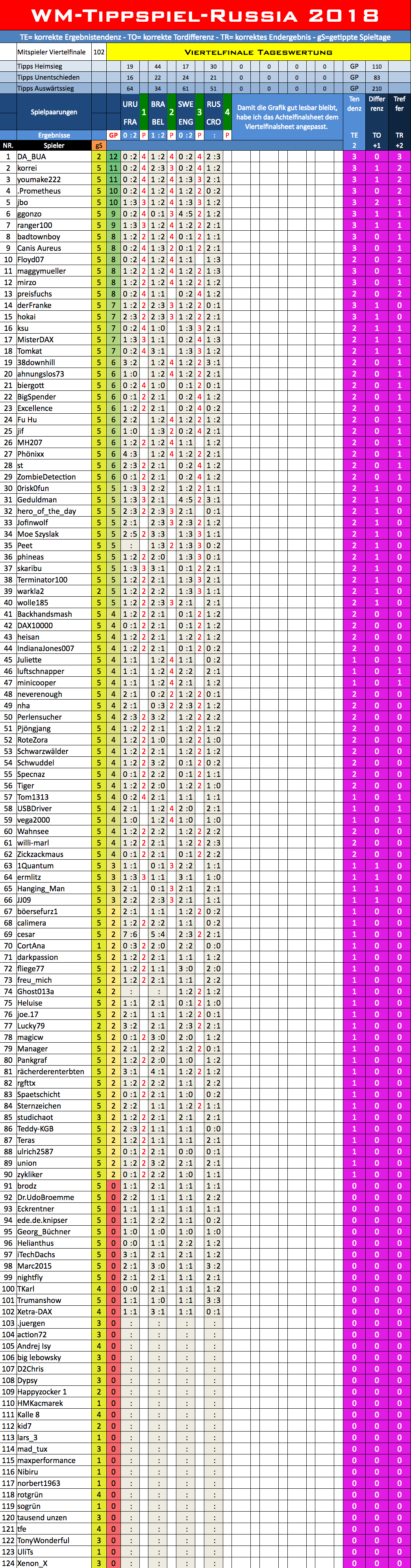WM 2018, TippR 5 Russia, Viertelfinale