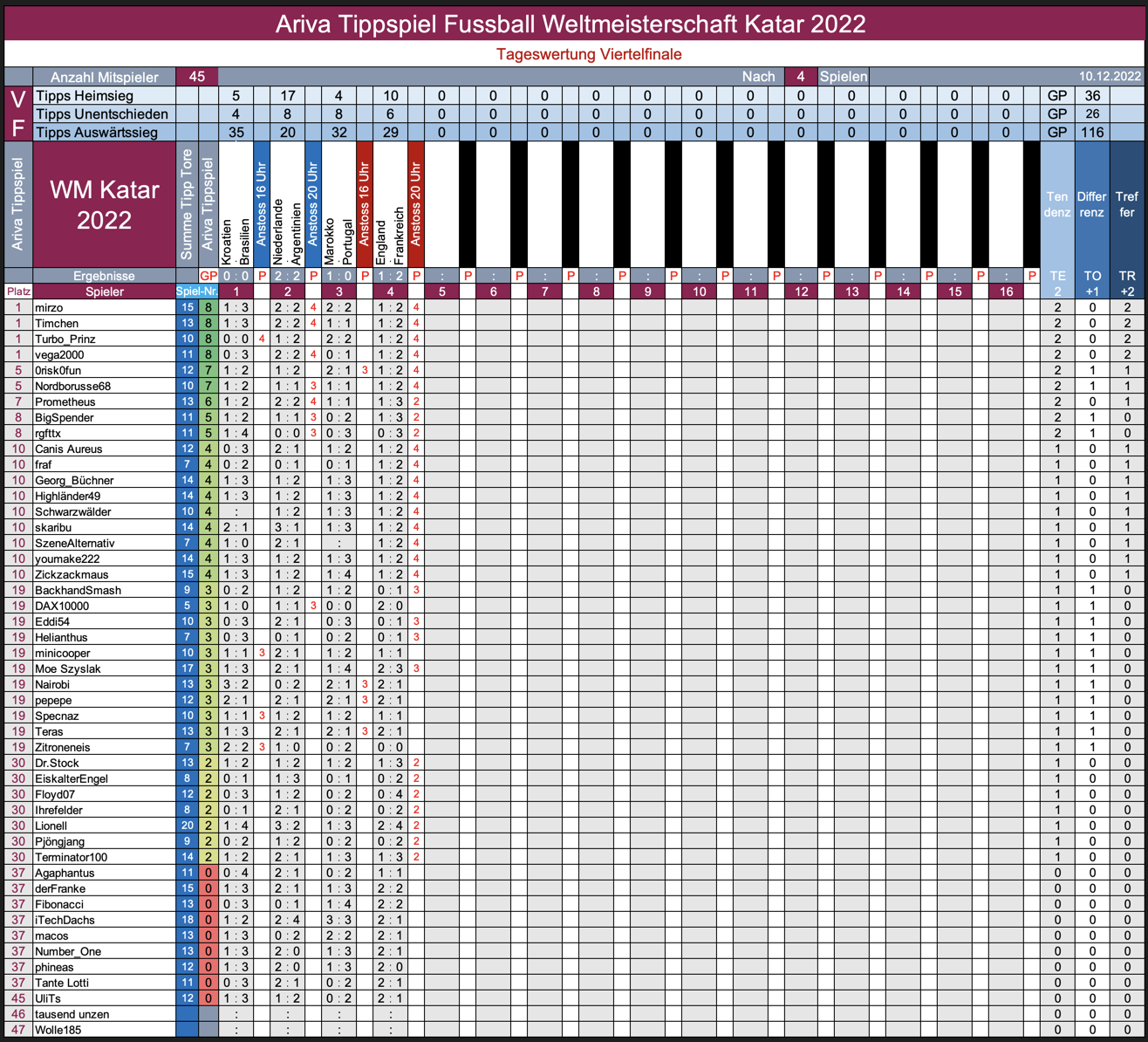 WM 2022, TippR 6 Katar, Viertelfinale: