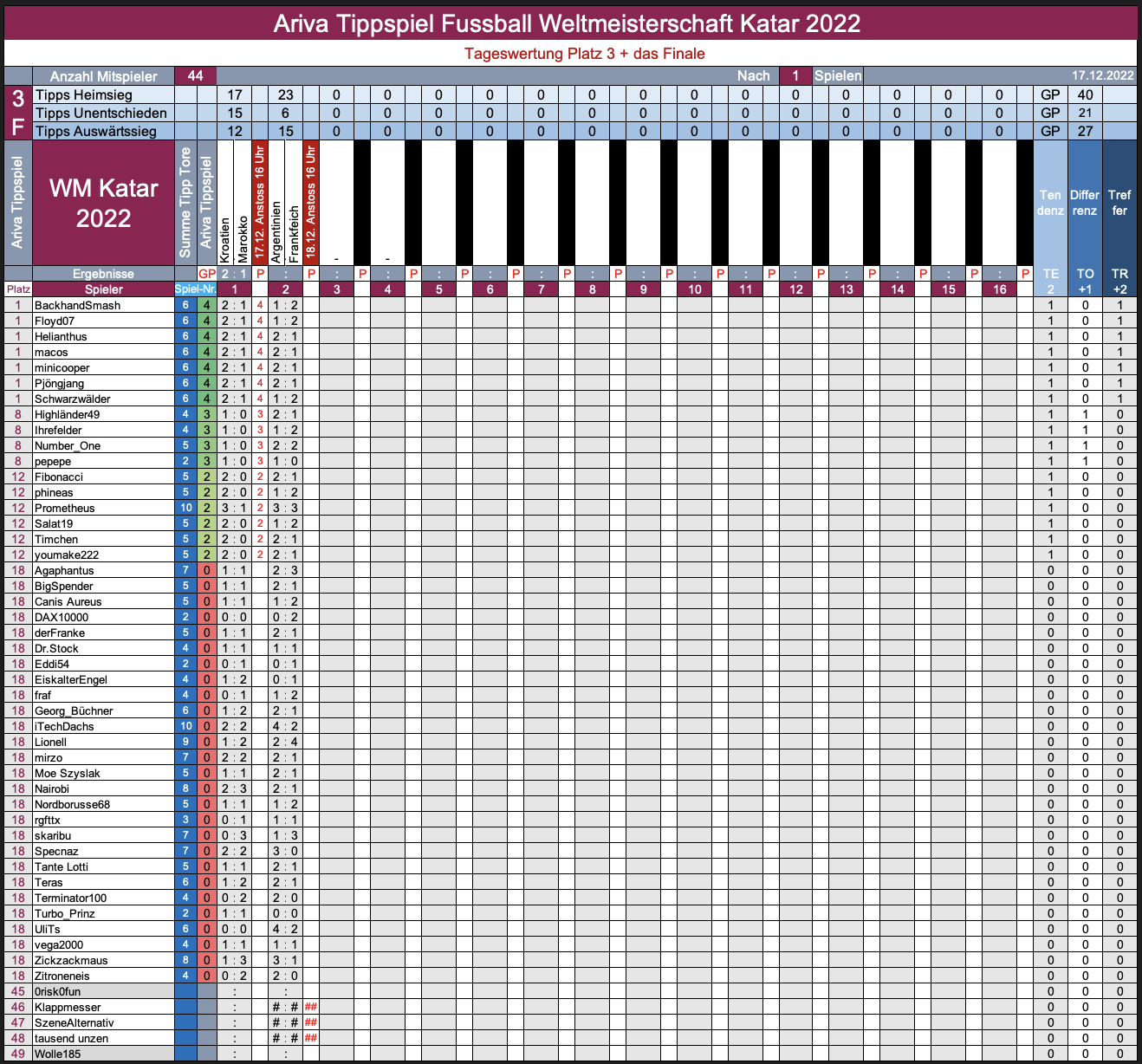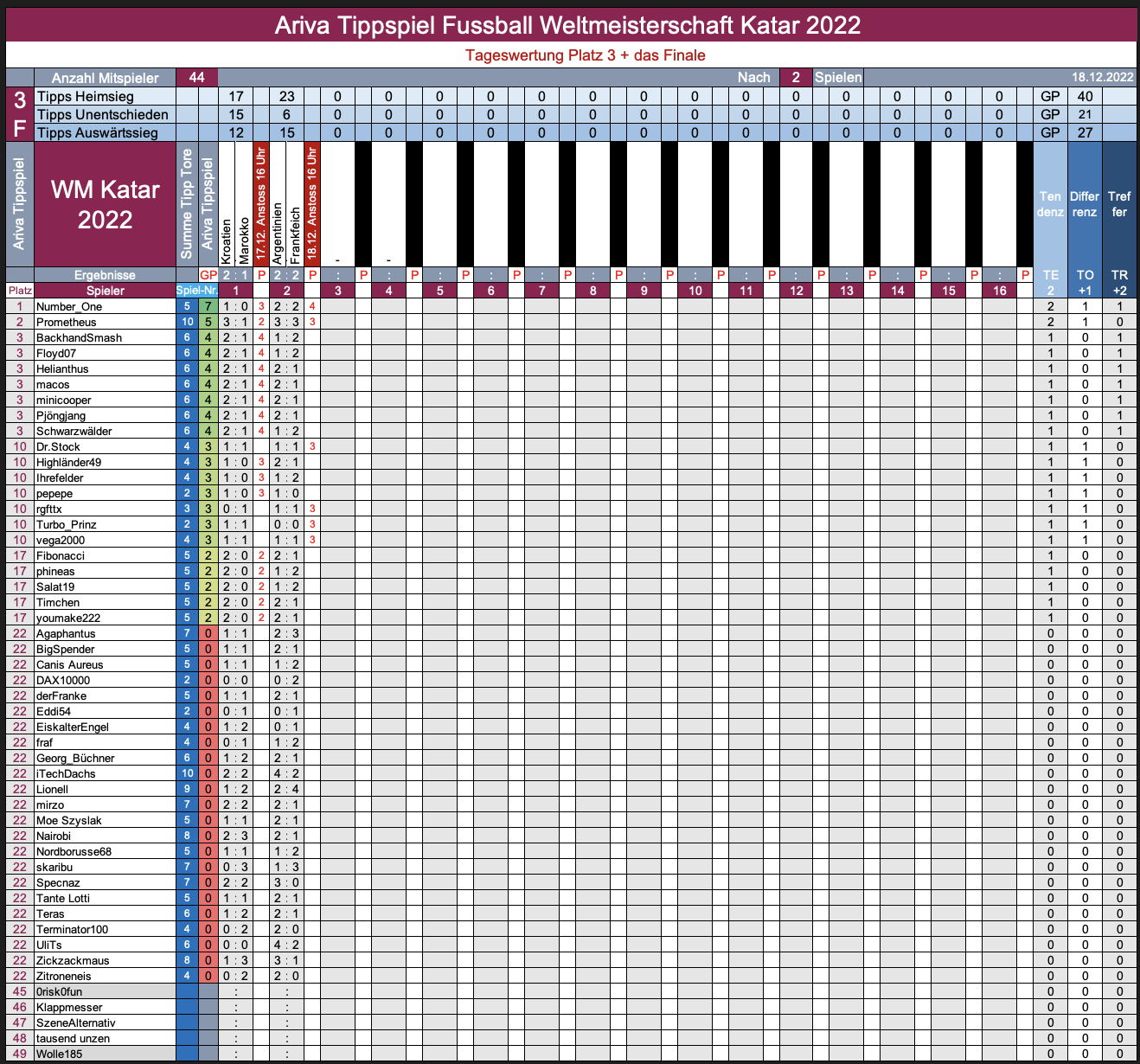 Und die Auswertung­en zur WM-Runde 7 gibt es dort:  WM 2022, TippR 7 Katar, Halbfinale­...