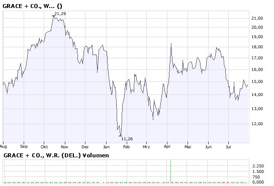 Ich kenne einen, der arbeitet bei Grace Germany und der meinte die machen Kurzarbeit, weil garnix mehr umgesetzt wird. Die wären bald pleite. Da ist bald 1€ Kurs, gerade weil die Zentrale in USA sitzen tut. Dann sind die alle pleite. Kaufkurs 1€! Kaufbefehl! dann geht dann etwas.