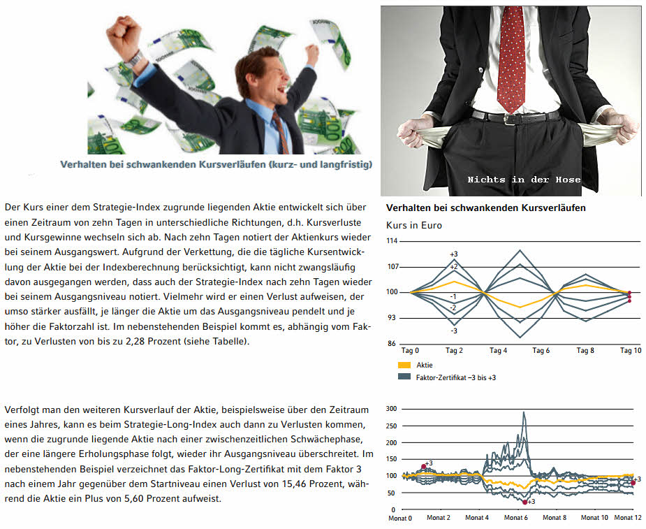 Es gibt auch Faktor-Zertifikate 3 Long, ... da wird ein Schwindlig­: von 99 EUR auf 1.990