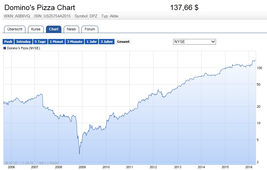 Domino's Pizza-Aktien 10 Jahres Performance