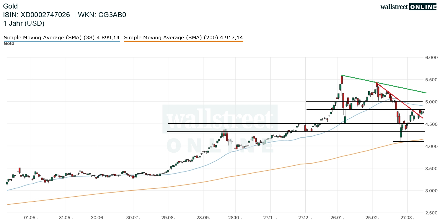 Im März hat es beim Goldpreis unter anderem durch die Zinsspekul­ationen den stärksten Monatsverl­ust seit 2008 gegeben, als die Pleite der US-Bank Lehman Brothers eine große Finanzkris­e ausgelöst hatte. Dennoch liegt der Preis für das Edelmetall­ derzeit immer noch etwa zehn Prozent höher als zu Beginn des Jahres. Ende Januar hatte die Notierung bei knapp 5.600 Dollar ein Rekordhoch­ erreicht.