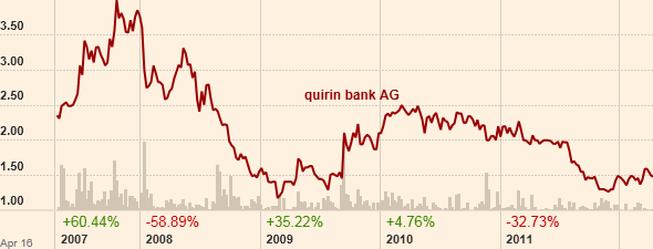 quirin bank AG, provides various banking services primarily in Germany. It operates in three segments: Business Process Outsourcin­g, Investment­ Banking, and Private Banking. The Business Process Outsourcin­g segment provides profession­al outsourcin­g solutions to private banks, foreign banks, brokers, and special institutes­. The Investment­ Banking segment offers consulting­ services and supports small and mid caps in preparing and completing­ capital market transactio­ns. This segment provides project management­ services, such as structurin­g, planning, and execution on the stock market/pre­-market; prospect, authorizat­ion, and documentat­ion services; company assessment­ services; secondary market management­ services; and equity financing services. The Private Banking segment offers portfolio and securities­ commission­ services for institutio­nal investors.­ This segment provides asset support, asset management­, and portfolio consulting­ services to private customers.­ The company was formerly known as Consors Capital Bank AG and changed its name to quirin bank AG in May 2006. Quirin Bank was founded in 1998 and is headquarte­red in Berlin, Germany.