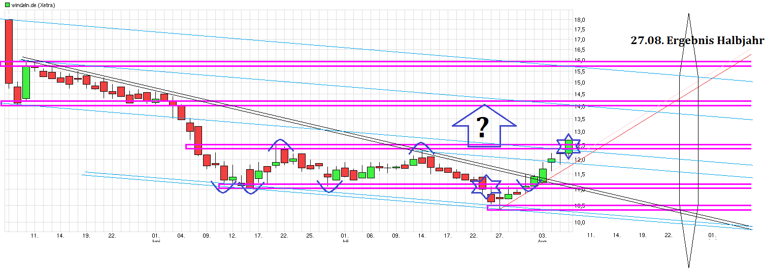 Da stellt sich die Frage wieweit die jüngse Abwertung des Yuan und das sich eintrübende Konsumklima in China nun auch auch windeln.de auswirken wird. In einer Woche gibt es die Halbjahreszahlen und neue Prognosen. Scheinbar gehen einige Leute in dem allgemeinen Trommelfeuer was an der Gesamtbörse herrscht hier bei der Aktie erstmal an die Seitenlinie, um abzuwarten was Sache ist. Von daher ist alles möglich nächste Woche, vom weiteren einknicken unter 10€ bis hin zum klaren Rebound nach oben, falls die Zahlenentwicklung in China nicht enttäuschen sollte.