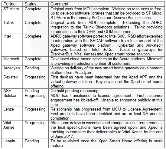 Xped erwartet, dass der Umsatz von rund $ 1.200.000 im Geschäftsjahr 2017 auf über $ 2.500.000 im Geschäftsjahr 2018 steigen wird. Dies wird weitgehend durch das JCT Healthcare-Geschäft mit einer Reihe von weit fortgeschrittenen Chancen in der Pipeline getrieben werden. Das Unternehmen erwartet auch starke Einnahmen, um von seiner Partnerschaft mit Shenzhen Lenze Technology Co. LTD ("Lenze") zu beginnen. Das Unternehmen freut sich über das Umsatzpotenzial im Bereich Smart Home, mit verschiedenen asiatischen Telco-Chancen in der Pipeline. Xped freut sich darauf, den Markt über seine Fortschritte zu informieren.