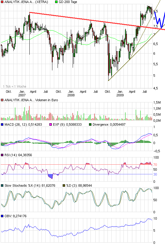 Der Buchwert dürfte sich auf 8,5-9,0 € erhöhen. Jeder Kurs unter den Mehrjahreshochs von 8,9-9,2 € ist für mich nen echter Witz, vor allem in dieser Branche. Ich kenn kein anderes MedTec-Unternehmen, welches börsennotiert ist, dass ein KUV unter 0,5, eine KBV unter 1 und ein einstelliges KGV hat. Da man bei Überwinden der Mehrjahreshochs auch charttehnisch viel Potenzial hätte, gehe ich vorbehaltlich eines Crashs am Gesamtmarkt von Kursen bei 12 € bereits im 1.Quartal 2010 aus. Alles Andere würde mich jedenfalls nach so langer Wartezeit sehr enttäuschen.
