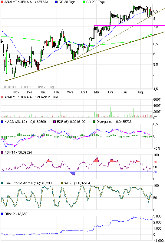 Was aber in den letzten Jahren ganz deutlich zu sehen ist: AJA hat seit seiner Konzentration auf das Instrumentengeschäft, nachhaltig Werte geschaffen. Zwar ist Umsatzvolumen verloren (bzw. zurück) gegangen aber die Qualität der Umsätze konnte erheblich gesteigert werden. Der Aktienkurs hat das meiner Meinung nach bereits teilweise honoriert. Und solnagen große Kurseinbrüche ausbleiben, können alle AJA Anteilseigner relativ beruhigt sein, was auch eine Qualität ist. Nur wenige sollten hier unterhalb ihrer Einstiegskurse liegen und zukünftig ist immer noch etwas Luft für weitere Kurssteigerungen.