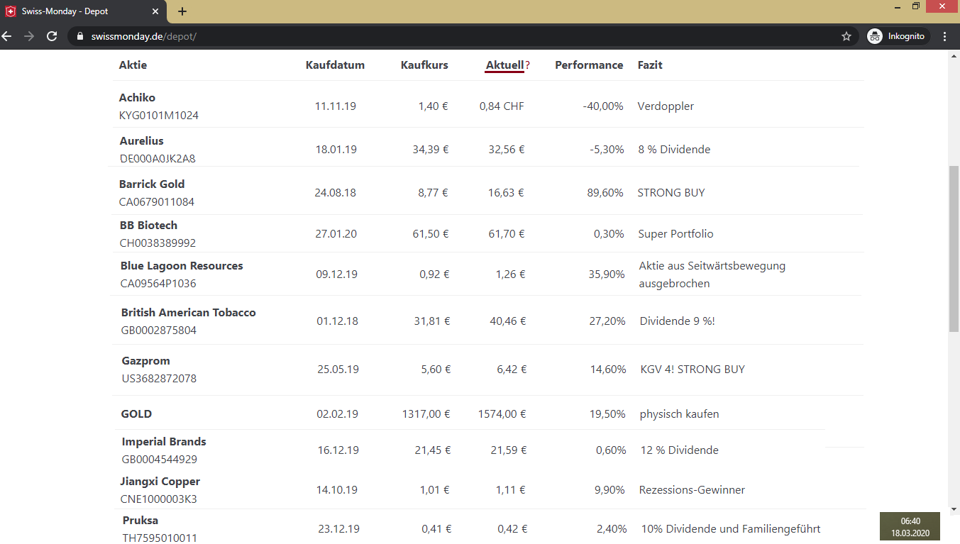 Gold. Spassig wär``s wenn Du über CSE gehandelt hast und ein entnervter "Schürfer" äh: