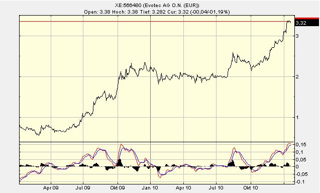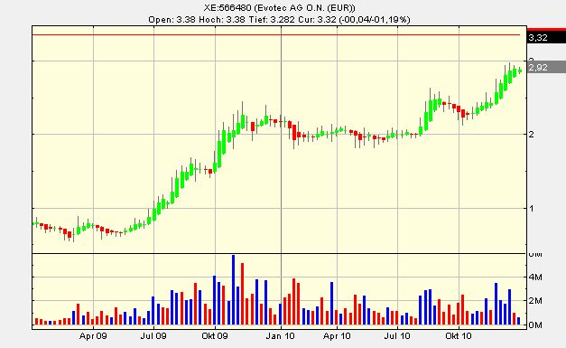 Evotec hat sich die letzten Wochen positiv entwickelt, desweitern sind dieses Jahr weitere gute News zu erwarten, daher ist mit steigenedn Kursen zu rechnen, kleine Rücksetzer mit einkalkuliert.