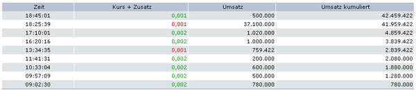 Ca. 400.000.000 Aktien stehen in Berlin im ASK zu 0,002 und ca. 90.000.000 zu 0,001 im Bit.