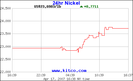 Das Interessante daran ist, dass der Nickelpreis derzeit ja nicht bei 8US$ pro Pfund steht, sondern bei über 17 US$ pro Pfund. Das würde bedeuten, dass die ganze Produktionsanlage in weniger als 6 Monaten zurück verdient ist. Auch der Zeitplan für den Produktionsbeginn ist ordentlich, denn die Company will innerhalb der nächsten 12 bis 15 Monate produzieren. Das heißt, ab spätestens Mitte 2008 ist das Unternehmen in Produktion und bis Ende 2008 sind schon alle Investitionen wieder zurückverdient (wenn der Nickelpreis auf gleichem Niveau bleibt).