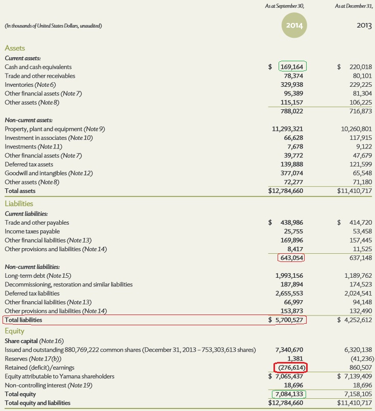 Die aktuelle Bilanz (30.09.14) vom Gold-Bergbau-Unternehmen.