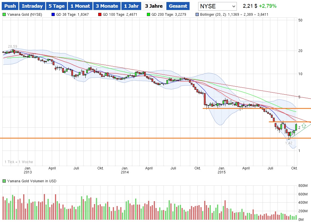 nachdem die Aktie überdurchschnittlich abgeschlachtet wurde. Nur fehlt mir zur Zeit der Glaube daran...trotzdem bleibe ich hier investiert in der Hoffnung, falls es eines Tages aufwärts geht , Yamana Gold die Performance schnell wieder aufholt.
