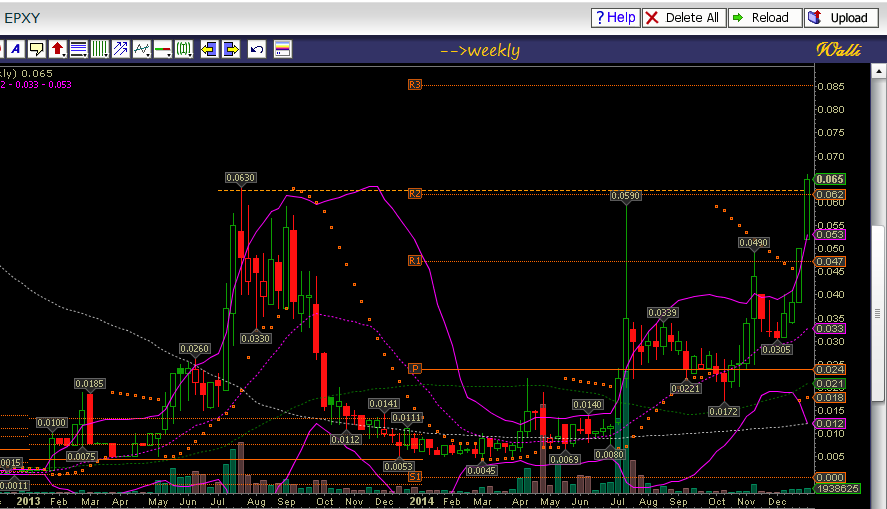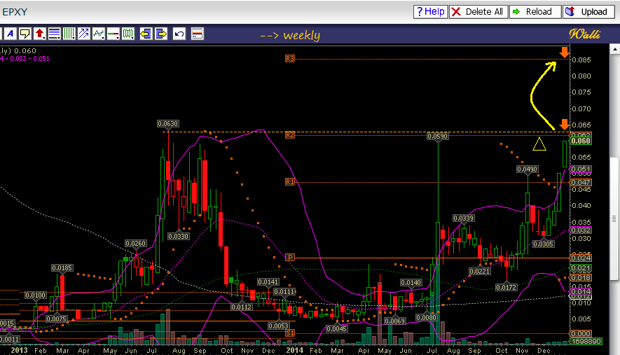 bohrt sich der Kurs durch die ~ $.062, ist Raum bis zum nächsten Widerstand, die $.085, arbeitet er sich durch den, geht der deutsche Geldkurs auf .07€ Das ist das erste Etappenziel. Dann kann man variabel Pakete werfen, für ~ +40% profits oder mehr, je nachdem, wie früh wer rein ist oder den Rest einfach unbefristet halten, solange der Chart insgesamt noch in Ordnung bleibt... die $.085 ist sozusagen der 'Außenposten', danach kommt nur noch deep space... der Rest ist sich konsequent nach dem Chart richten, wenn er den Eindruck erweckt, dass ein Penny im Abwärtstrend ist und bleibt (erspare mir das Bsp.), dann hält man es nat. nicht -99% lang und "jubelt" dabei bzw. schimpft auf die Skeptiker, sonst massakriert man sich ja praktisch selbst... und die anderen stehen drum rum und schmunzeln... alles erlebt, aber vollkommen abwegig... nicht verrückt machen lassen und den Chart genau lesen... von der Chartkonstellation, wie sie aktuell gegeben ist bei Epoxy, liegt die Eintrittswahrscheinlichkeit des brechens von Außenposten $.085 bei ~90%, meiner Meinung nach und die kann nat. vollkommen falsch sein, logisch. Wie es sich nun wirklich verhält, entscheidet der Markt. Prima."