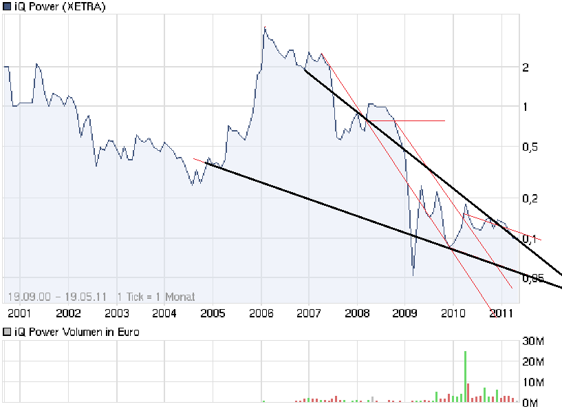 nicht böse sein, aber deine "Linien" sind sehr willkürlich gezeichnet! Verschiebe den 2005er Punkt an das echte Tief, den zweiten fetten Strich an die Tops zwischen 2009 und 2010 und Low 07/08 und schon schaut das Bild ganz anders aus...