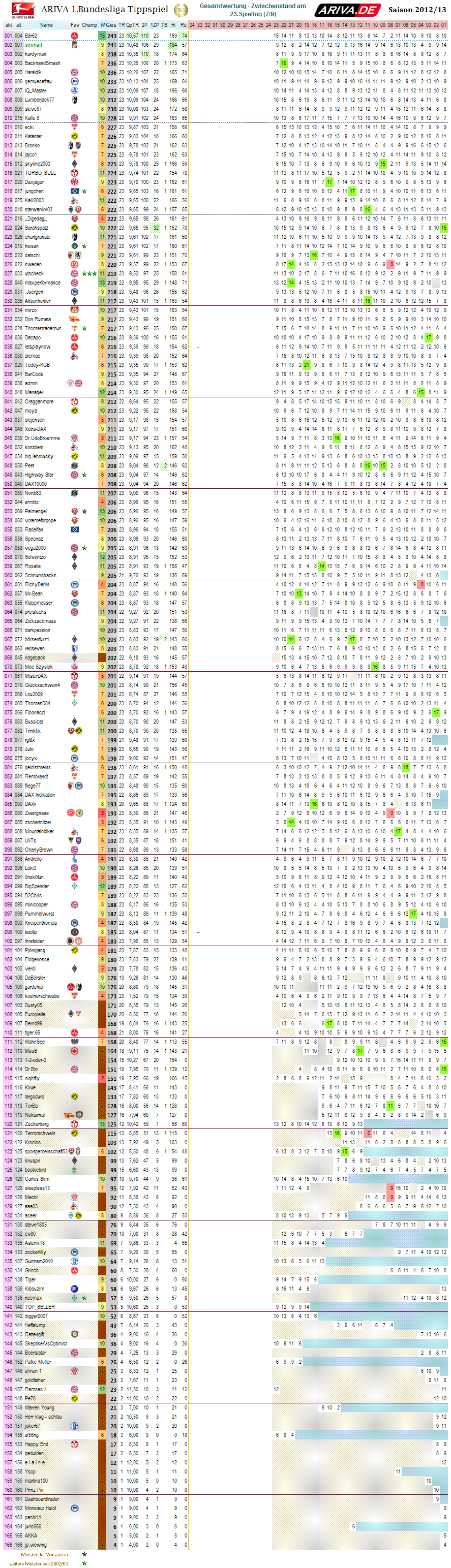 Tipp Spiel ganz oben sein :-)" sein Zitat... und so führt Bär62 die Tageswertung aktuell an, und ist stark auf Tagessiegerkurs... Und - hier steht die Clubfahne als Logo hinter der ID des Bär62... Clubbär62 auf dem Tipperthron BL1 Gesamtwertung... der Honigschlumpf.. :-))