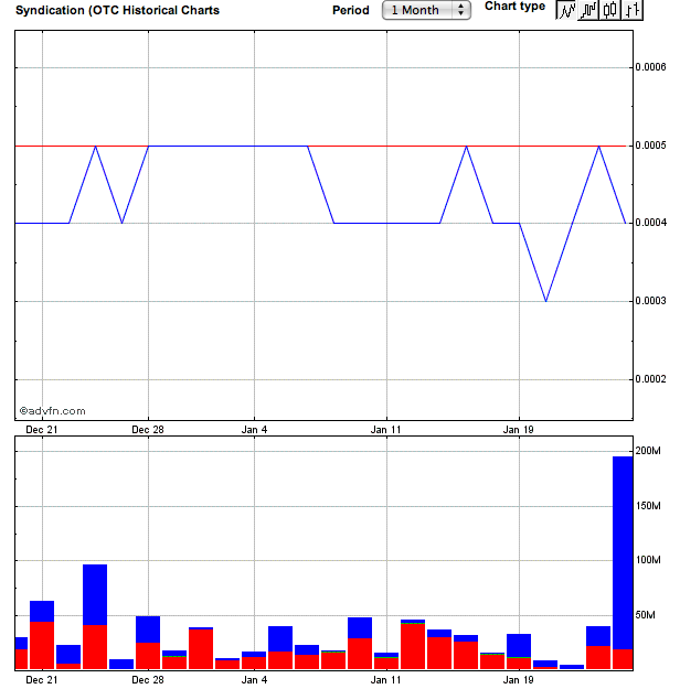 When the CEO, Brian Sorrentino was asked to comment on the financing he stated, "As mentioned in earlier news releases, the Company will continue to pursue multiple sources of financing however, we are extremely excited about this particular arrangement. The Madrid finance group is already considering finance packages for additional projects in our Energy City agenda, specifically the Palmetto Gas Pipe Line. They are reasonable in cost, faster and more predictable then the government, extremely well capitalized and motivated to grab - with us - a piece of South Carolina and the renewable energy revolution. I can't ask for a better partner. In the Kingstree S.C. Bio-diesel manufacturing facility, we have staked our claim in the State of South Carolina and the frontier of global renewable energy. It's my strategy to dig in, plant our flag and hang on. In my opinion, with this crew and a couple of smart moves, over the next 10 years, the natural growth of the industry will carry us into a rich and profitable future," said Brian Sorrentino, the CEO of Syndication Inc. News Pending.
