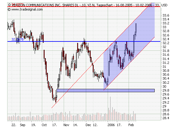Dazu gibt es noch Daimler & Procter & Gamble. Den Start macht aber Verizon.