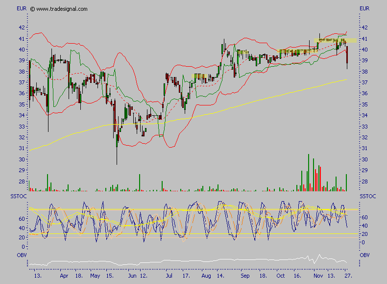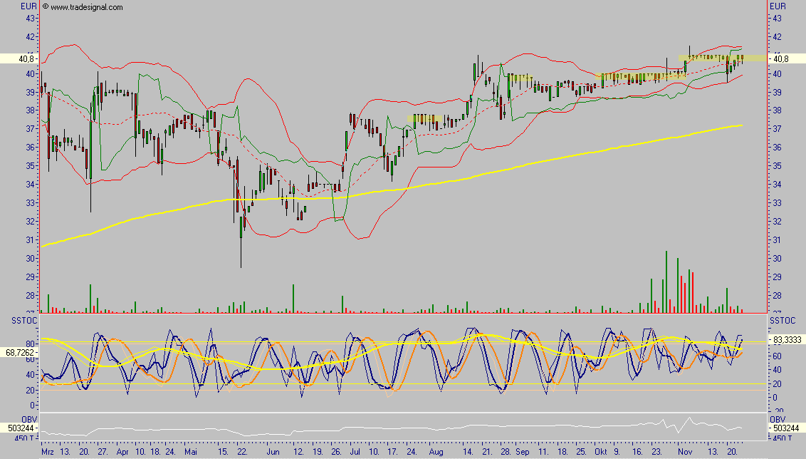 Schlusskurs am Freitag war 40,70 Euro. Mein Stopp/Loss Kurs sind 38 Euro.
