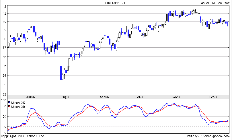 Die Aktie ist eine derer, welche ich länger als 1 Jahr halten werde, 2007 verspreche­ ich mir eine Perf. von cirka 20 - 30 Prozent + Dividende!­ Langfristi­g ist Dow Chemical für mich eine 50 % Chance mit jährl. feiner Dividende!­