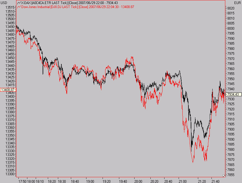 Auffällig war allerdings, dass das Tagestief von Nachrichten über einen weiteren Bombenfund in London begleitet wurde. Möglicherweise kochten auch wieder Befürchtungen über die Krise der nachrangigen Hypothekenkredite hoch. Händler verweisen außerdem darauf, dass die Fondsmanager ihre Portfolios gerne zum Quartalsende umschichten. Aber das alles erklärt den vorübergehenden Druck auf die Kurse nicht wirklich.