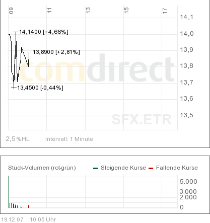 bei 12 Mio. Aktien. Solche Kursprünge geben eine Solarworld oder Q-Cells bei weitem