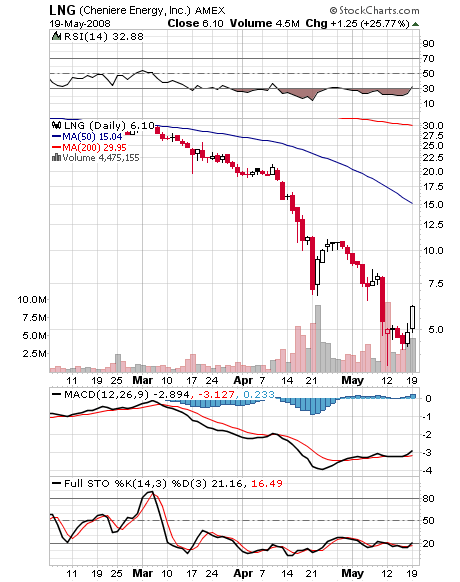 HOUSTON - (BUSINESS WIRE) - 9. Mai 2008 - Cheniere Energy, Inc. (AMEX: LNG) berichtete einen Nettoverlust von $ 49,9 Millionen oder $ 1,06 pro Aktie (unverwässert und verwässert), für das erste Quartal 2008 im Vergleich mit einem Nettoverlust von $ 34,6 Millionen oder $ 0,63 pro Aktie (unverwässert und verwässert), während die entsprechenden Zeitraum in 2007.