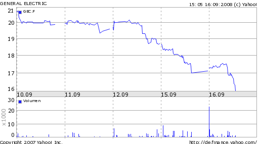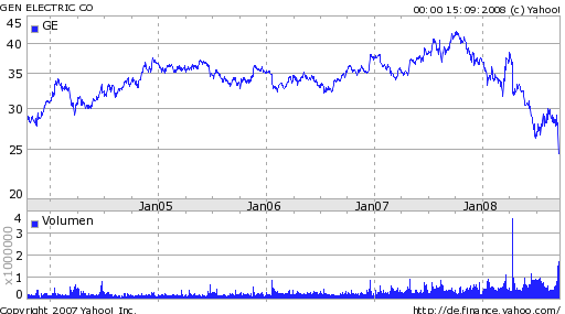 Im Strudel der abstürzenden Finanzinstitute wurde auch General Electric abgewertet. Das Unternehmen zählt zu den 5 größten Unternehmen weltweit und hat soweit ich das sehen konnte eine stabile Basis.