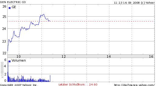 Die Schnäppchenkurse von 22 dollar bei der eröffnung sind schon wieder Geschichte! GE stabil bei 24,50 $